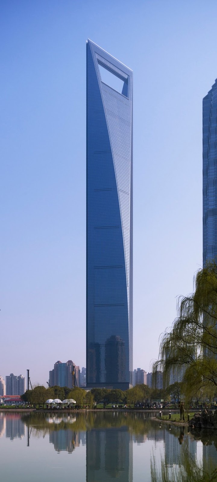 Este edificio es el más original de la lista respecto a su diseño ya que incorpora una apertura en su parte superior, inicialmente esta iba a tener forma circular pero desecharon la idea ya que el edificio se encuentra en China y el círculo recuerda a la bandera de Japón, uno de sus máximos rivales a nivel económico.